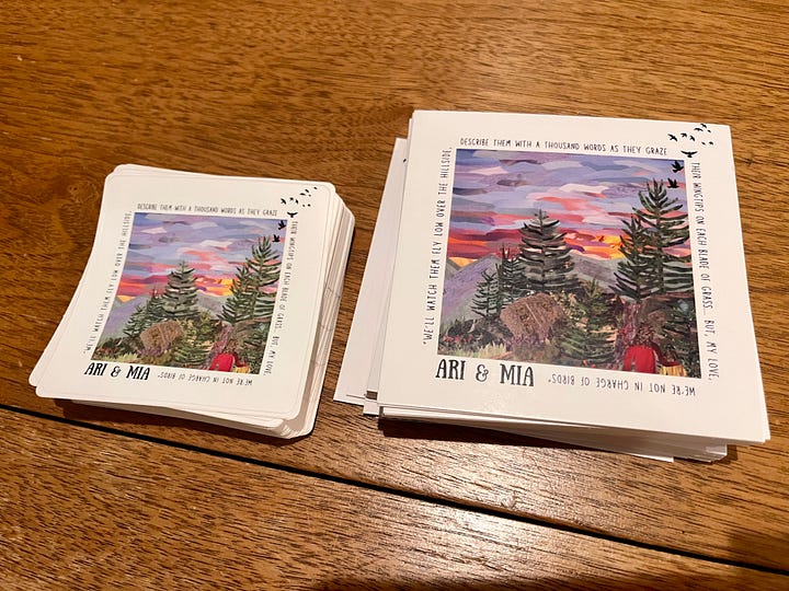This is the first time we’re leaning into merch beyond physical CDs and let me just say, it is all really cute. We’ve got a short run of CDs on its way to my doorstep, but we also have stickers, postcards (with download codes on the back), and tote bags for which pictures and purchase links will appear in my next newsletter. Also, limited edition cassette tapes with original art by our kids will be available at our spring concerts.